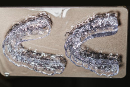 Bei Protilab ermöglicht das Thermoformen die Herstellung maßgefertigter Geräte anhand von 3D- oder Gipsmodellen. Durch die kombinierte Wirkung von Wärme und Druck fertigen wir präzise Zahnschienen für Aufhellung, Retention, Schutz.